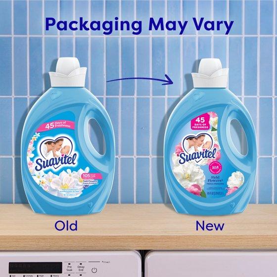 Suavitel Fabric Conditioner, Liquid Fabric Softener, 45 Days of Freshness, Field Flowers Scent, 105 fl oz