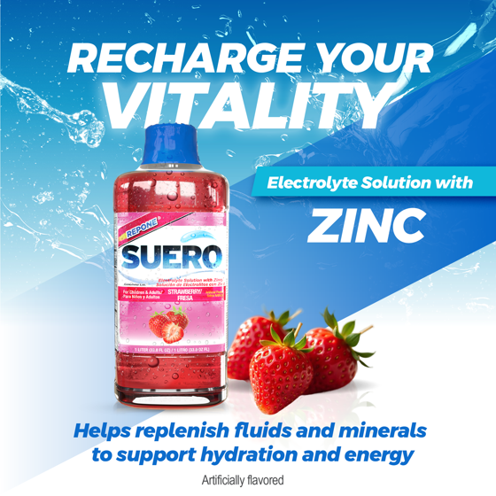 Suero Repone Electrolyte Solution With Zinc, Strawberry, For Adults & Children 1 Year & Older, 33.8 Fl Oz