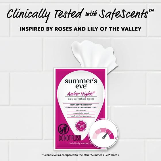 - Summer's Eve Amber Nights Daily Refreshing Feminine Wipes remove odor-causing bacteria