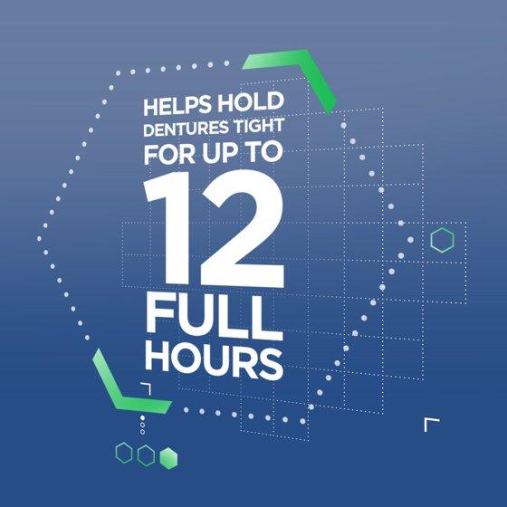 - Extra Strength Super Poligrip Denture Adhesive Powder offers a strong 12 hour hold and helps prevent irritating food particles from getting trapped under your denture