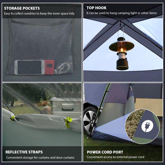 SUV Camping Tent for 6-8 Person with Rainfly, Car Camping Tent with Waterproof, Double Layer Design with Storage Bag, Green & Gray