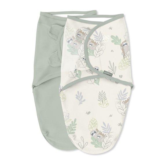 SwaddleMe by Ingenuity Original Swaddle for Baby, 100% Cotton, Improves Sleep & Calms Startle Reflex, 0-3 Months, 1.0 TOG, 2-Pack - Peekaboo Sloth