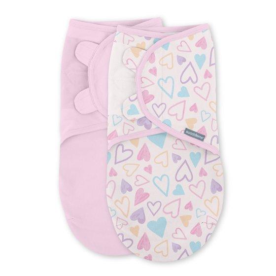 SwaddleMe by Ingenuity Original Swaddle for Baby, 100% Cotton, Improves Sleep & Calms Startle Reflex, 0-3 Months, 1.0 TOG, 2-Pack - I Heart You