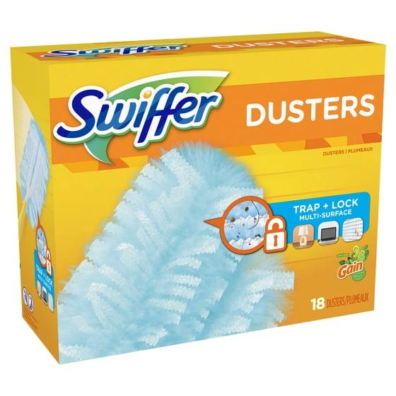 • Swiffer Dusters TRAP + LOCK dust wherever dust shows up, including fan blades, blinds, car interior, keyboard vents, bookcases, and more. They are made with specially coated fibers that grab onto dust & don't let go. Enjoy the lasting freshness* of Gain as you clean. *Leaves behind up to 1 hour of freshness after initial product use