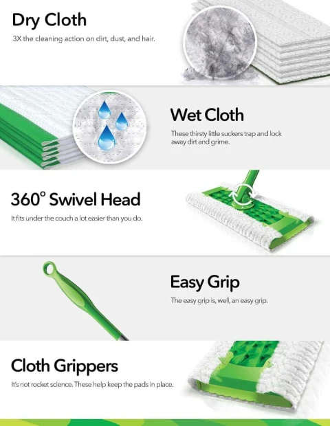 - For small living spaces, Swiffer is compact, lightweight and easy to store. So, It's always ready to go