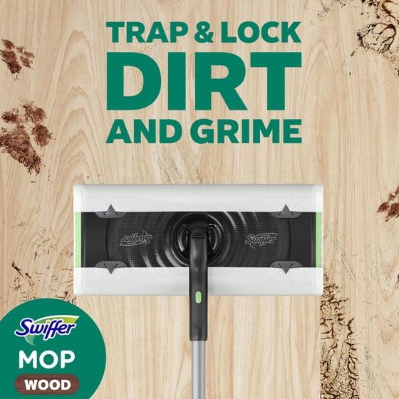 - Swiffer Sweeper Heavy Duty wet mop refills TRAP + LOCK™ dirt deep in cloth. These mop pad refills trap 50% more dirt compared to standard Swiffer Wet Mopping Cloths. They are safe to use on all finished floors and have a scrubbing strip to remove tough spots.