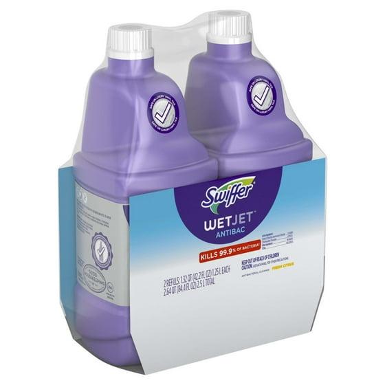 Swiffer Wet Jet Mop Refill Solution, Wood, Laminate, Tile, Floor Cleaner, Antibacterial, 42.2 fl oz, 2 Pack