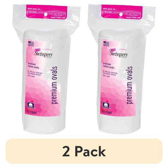 (2 pack) Swisspers Premium Cotton Ovals, 100% Chlorine Free Cotton, Dermatologist Tested, Soft, Strong, Sensitive Skin Safe, Absorbent, Hypoallergenic, Cruelty-Free, Vegan, Paraben Free, 50 Pads