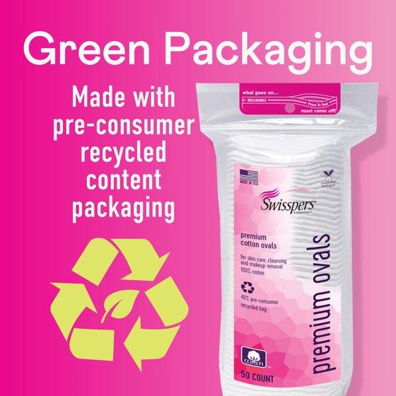 Swisspers Premium Cotton Ovals, 100% Chlorine Free Cotton, Dermatologist Tested, Soft, Strong, Sensitive Skin Safe, Absorbent, Hypoallergenic, Cruelty-Free, Vegan, Paraben Free, 50 Pads