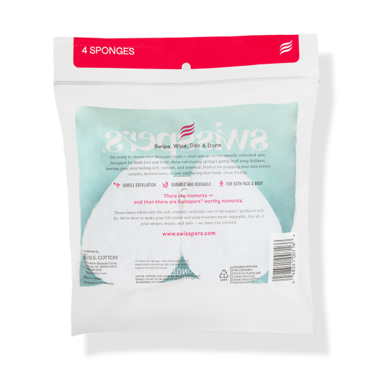 Swisspers Premium Exfoliating Cleansing Sponges, For Face & Body, Cruelty-Free & Vegan, 4 count