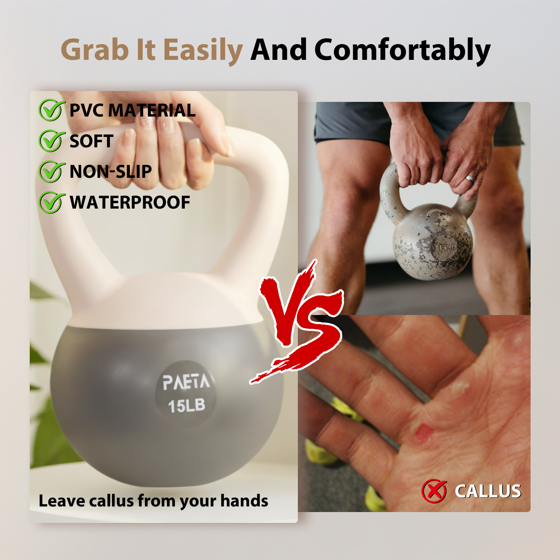- 【 Safe and Durable: Soft PVC+2mm Steel Sand 】 Internally filled with 2mm steel sand, with precise weight. Soft kettlebells are skin-friendly and are suitable for beginners, unlike metal kettlebells, which have hard edges and are easy to hurt when used for a long time. At the same time, the soft kettlebell is furniture-friendly, preventing damage to the floor or accidental injury to family members. It is very suitable for families with children and pets. PVC material is durable, while the metal kettlebell coating is easy to peel and rust.