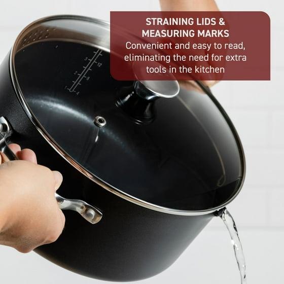 - Ultimate Convenience: Features riveted stainless steel handles for a comfortable, firm, and secure grip. The deep shape and pouring edges offer increased capacity and ensure mess-free pouring. The straining lids and built-in measuring marks eliminate the need for additional tools.