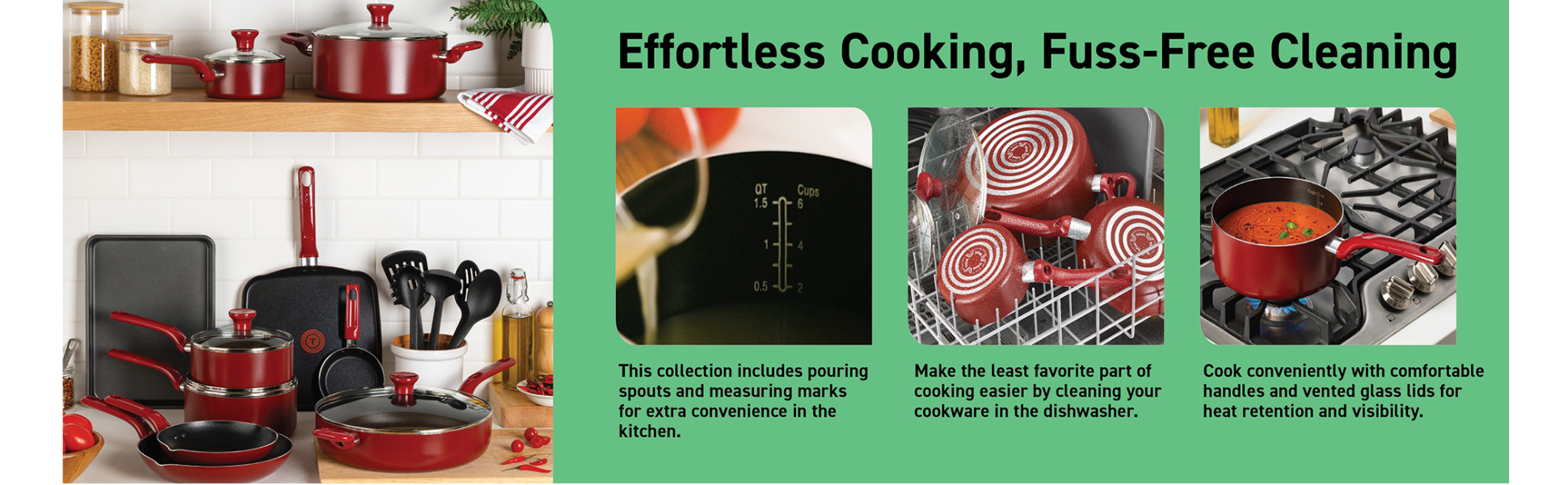 T-fal Easy Care 12-Piece Non-Stick Cookware Set, Pots and Pans, Red