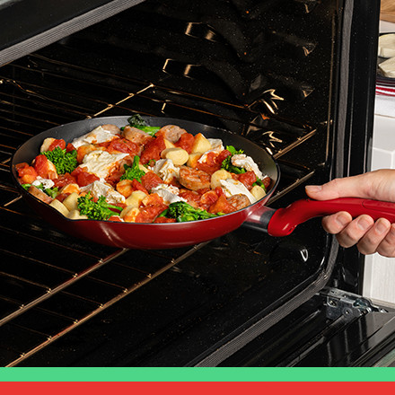 - Thermo-spot technology: Turns solid red to indicate when the pan is properly preheated.