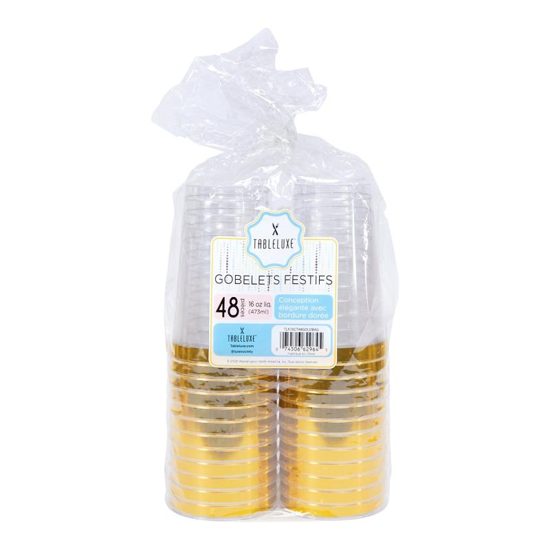 Tableluxe Premium Disposable Gold Rimmed Clear Plastic Tumbler, 16 fl. oz., 48 ct.