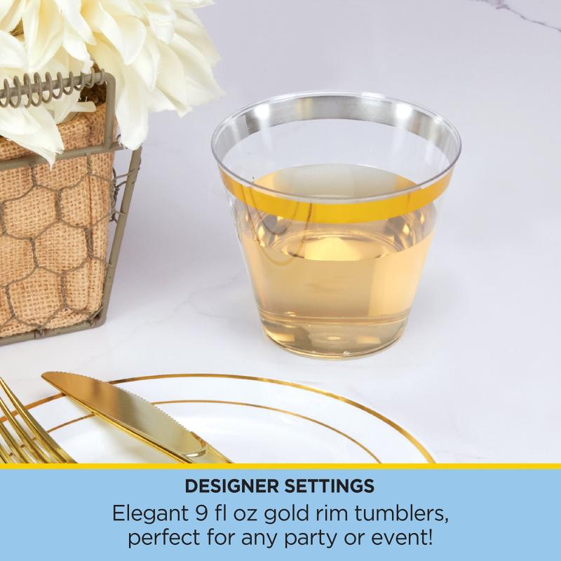 Tableluxe Premium Gold Rimmed Clear Plastic Tumbler, 9 fl. oz, 48 ct.