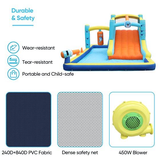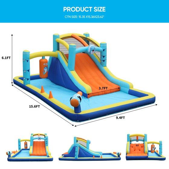TABU Inflatable Water Slide with Blower,Kids Bounce House with Water Gun,Climbing Wall,Boxing Game,15.6 x 9.6 x 6.1 ft