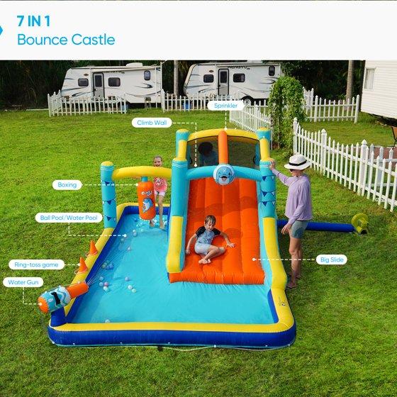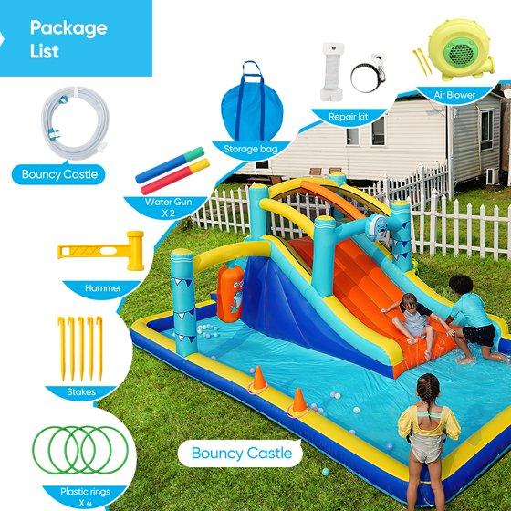 - Features: Water Slide, Splash Pool, Water Gun, Ring Toss, Sprinkler, Climb Wall, Boxing
