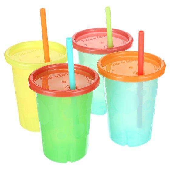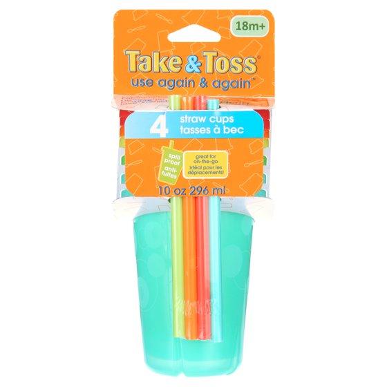 Take & Toss Straw Cups, 10 Oz Toddler Sippy Cups – 4 Pack