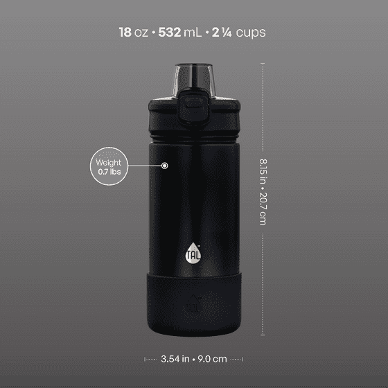- TAL Stainless Steel Ranger Push Water Bottle 18oz, Black, 1 each