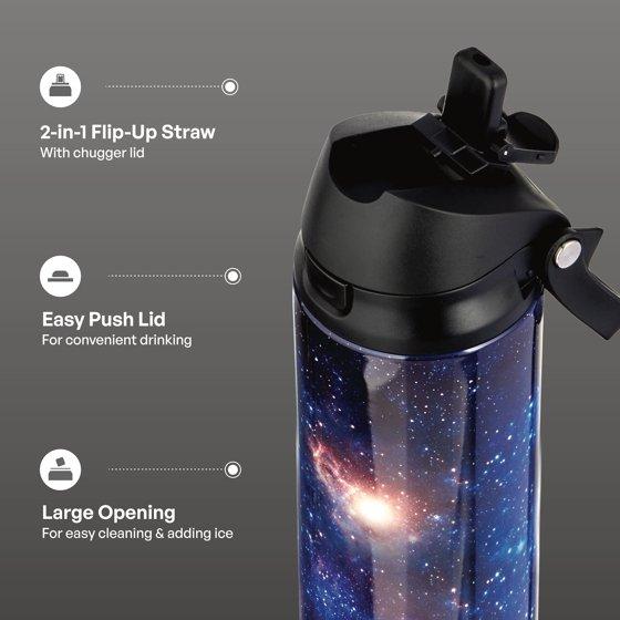 - TAL Stainless Steel 2-in-1 Straw and Chug Water Bottle with Push Lid 24 fl oz, Black Space, 1 each