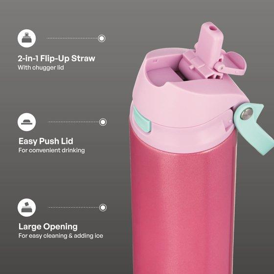 - TAL Stainless Steel 2-in-1 Straw and Chug Water Bottle with Push Lid 24 fl oz, Pink Shimmer, 1 each