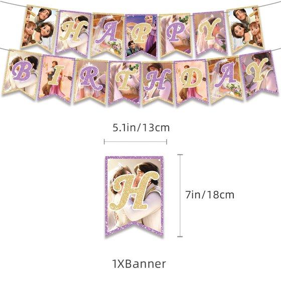 Tangled Theme Cartoon style Birthday Decoration Kits,Party Supplies Including Banner, Balloons, Cake Toppers, Cupcake Toppers,Background Flag.