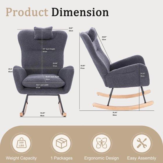 - Ergonomic & Elegant Design: High backrest and armrest provides you with great comfort and safety. Wood color legs can adorn your house. Gently rock your baby to sleep during nap time or read to your little ones in this comfy chair.