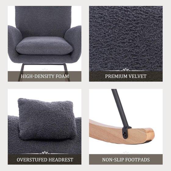Tappio Upholstered Rocking Chair, Nursery Glider Rocker Rocking Accent Chair Padded Seat with High Backrest, Accent Armchair Comfy Side Chair for Living Room, Bedroom, Office, Dark Gray