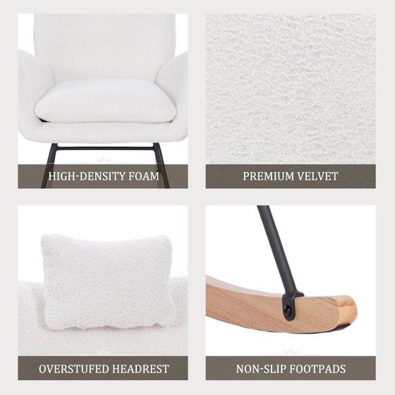 Tappio Upholstered Rocking Chair, Nursery Glider Rocker Rocking Accent Chair Padded Seat with High Backrest, Accent Armchair Comfy Side Chair for Living Room, Bedroom, Office, White