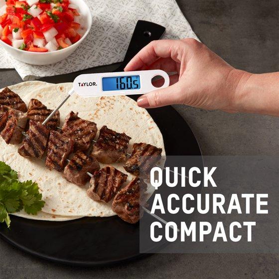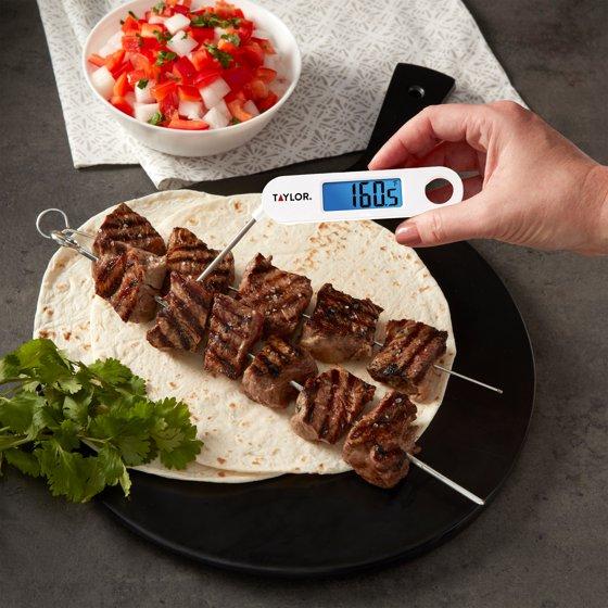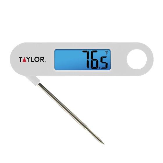 - Taylor Stainless Steel Digital Folding Probe Meat Thermometer, Blue Backlight Display, White
