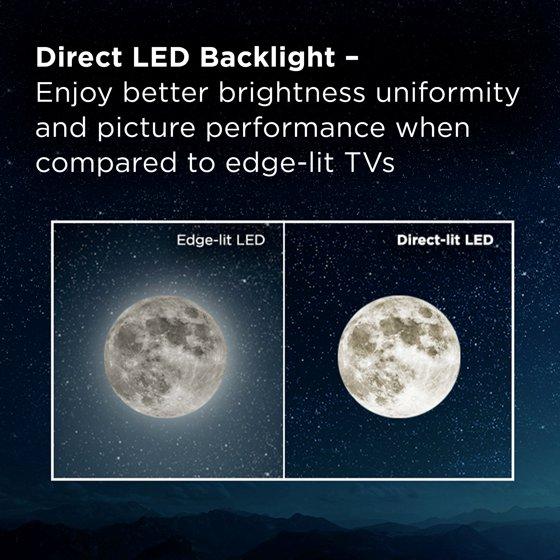 - Direct LED Backlight - Enjoy better brightness uniformity and picture performance when compared to edge-lit TVs