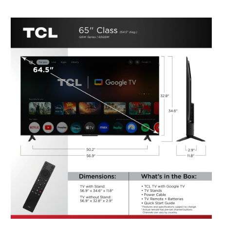 - TCL TV+ Free Streaming - Discover over 350 free live channels and thousands of on-demand movies and shows—no subscriptions or logins required. TCL TV+ puts endless entertainment at your fingertips right out of the box. - Perfect for cord-cutters and families who want instant, free entertainment value.
