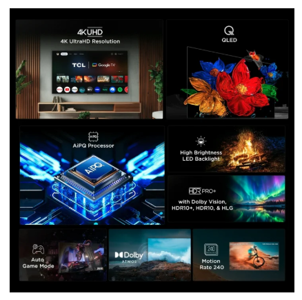 - TCL AIPQ Processor - The smart AIPQ Engine analyzes content in real time to optimize brightness, contrast, and color—so everything you watch looks incredible. - Perfect for binge-watchers who want consistent quality across every show.