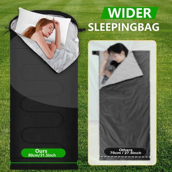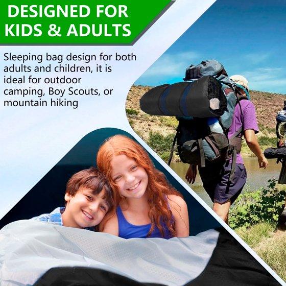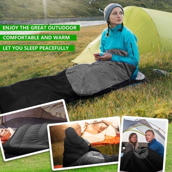 Teblint Camping Sleeping Bag for Adults Kids, Cold Weather Warm Sleeping Bag with Compression Bag for 3 Seasons, Compact Camping Essentials Gear Accessories Hiking Sleep Must Haves-Black
