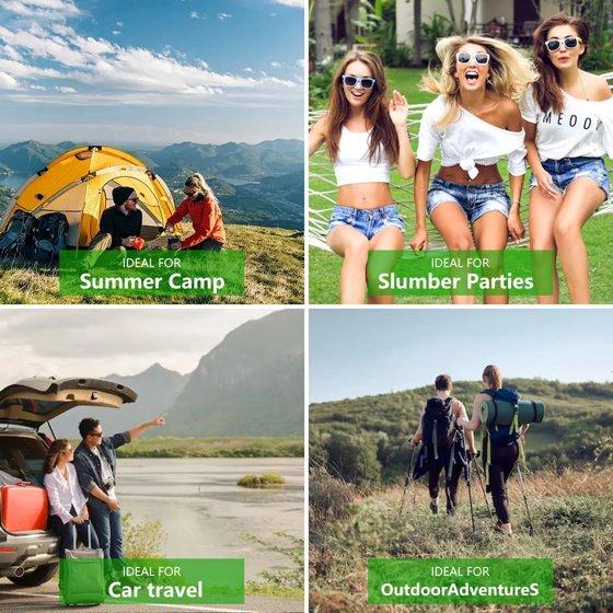 When you're looking for a sleeping bag or quilt, you'll quickly find that there are a lot of options out there. So that's why we created this sleeping bag for women, teens, and kids, this sleeping bag with dimensions of 86.6 x 31.5in and weighing only 2.6 pounds. It could be fully opened to be a blanket for picnic or play. Convenient to carry along for any outdoor adventures with the carry bag. And the rated temperature is 50-68℉. Camping sleeping bag is made of premium 210T ripstop microfiber fabric, lined with 190T polyester pongee. Waterproof outer shell and polyester fiberfill for optimal warmth and insulation. It's perfect for spring, summer, fall, and cool weather. The fabric is waterproof and difficult to stain, easily to clean by wiping and also machine washable.