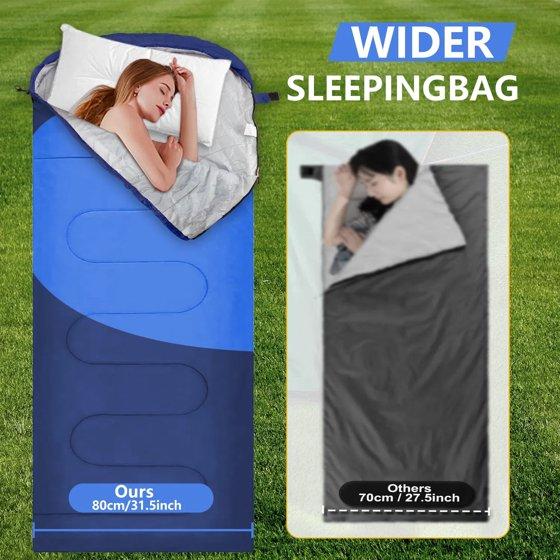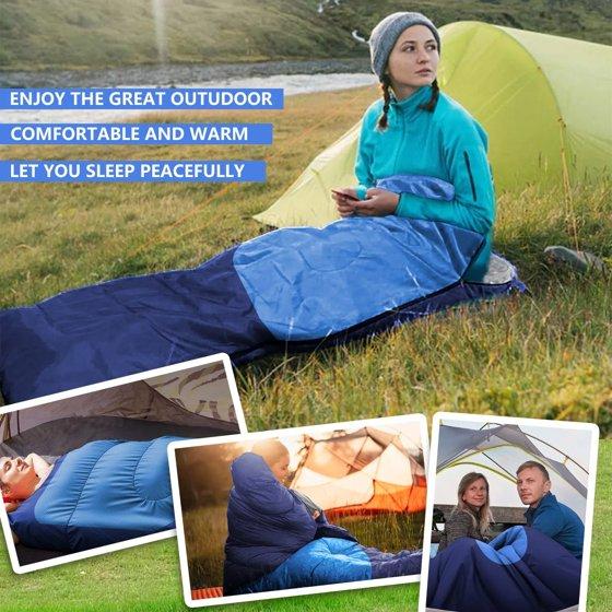 Teblint Camping Sleeping Bag for Adults Kids, Cold Weather Warm Sleeping Bag with Compression Bag for 3 Seasons, Compact Camping Essentials Gear Accessories Hiking Sleep Must Haves-Blue