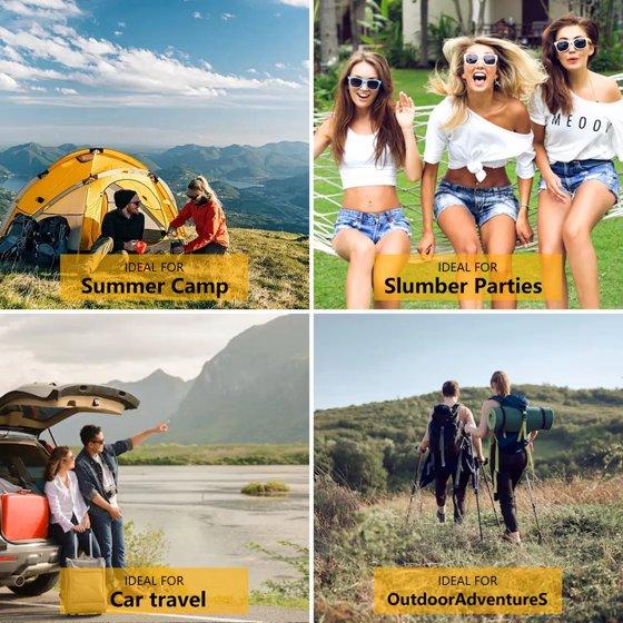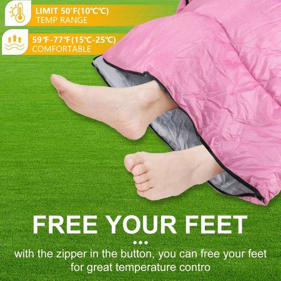 When you're looking for a sleeping bag or quilt, you'll quickly find that there are a lot of options out there. So that's why we created this sleeping bag for women, teens, and kids, this sleeping bag with dimensions of 86.6 x 31.5in and weighing only 2.6 pounds. It could be fully opened to be a blanket for picnic or play. Convenient to carry along for any outdoor adventures with the carry bag. And the rated temperature is 50-68℉. Camping sleeping bag is made of premium 210T ripstop microfiber fabric, lined with 190T polyester pongee. Waterproof outer shell and polyester fiberfill for optimal warmth and insulation. It's perfect for spring, summer, fall, and cool weather. The fabric is waterproof and difficult to stain, easily to clean by wiping and also machine washable.