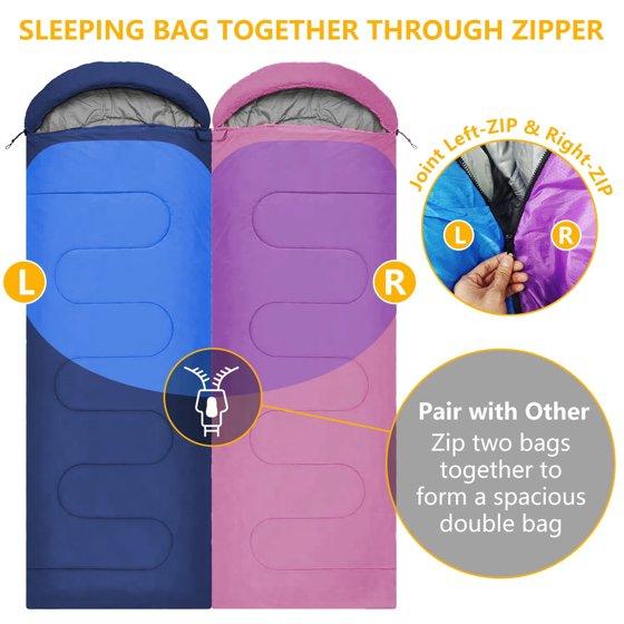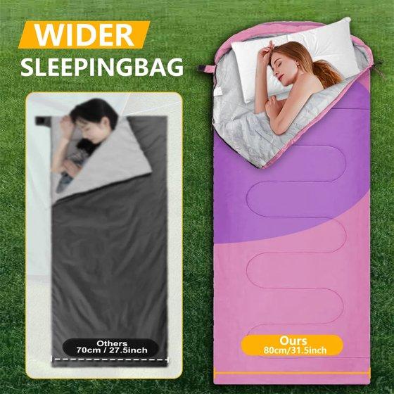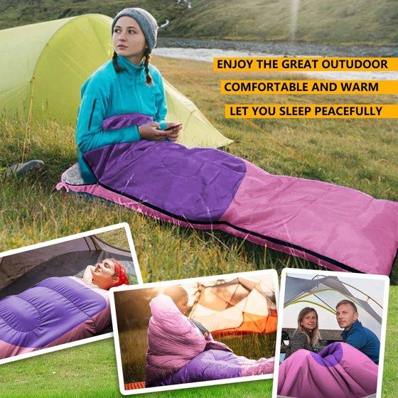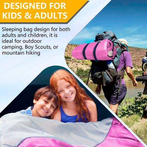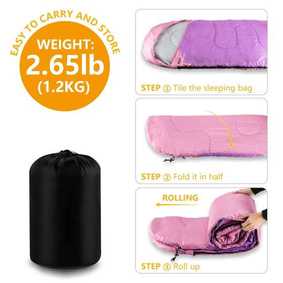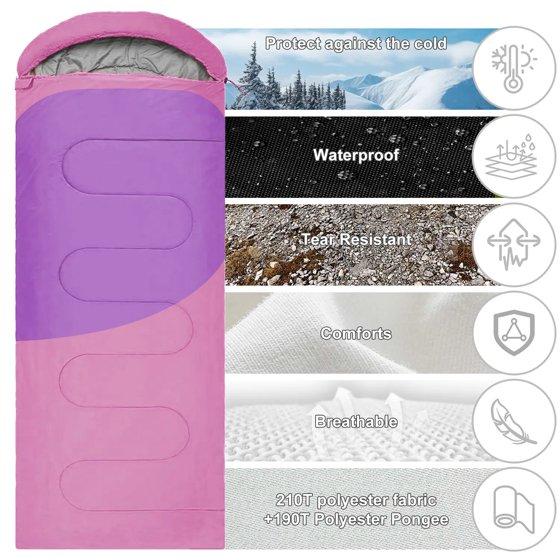 Teblint Camping Sleeping Bag for Adults Kids, Cold Weather Warm Sleeping Bag with Compression Bag for 3 Seasons, Compact Camping Essentials Gear Accessories Hiking Sleep Must Haves-Pink