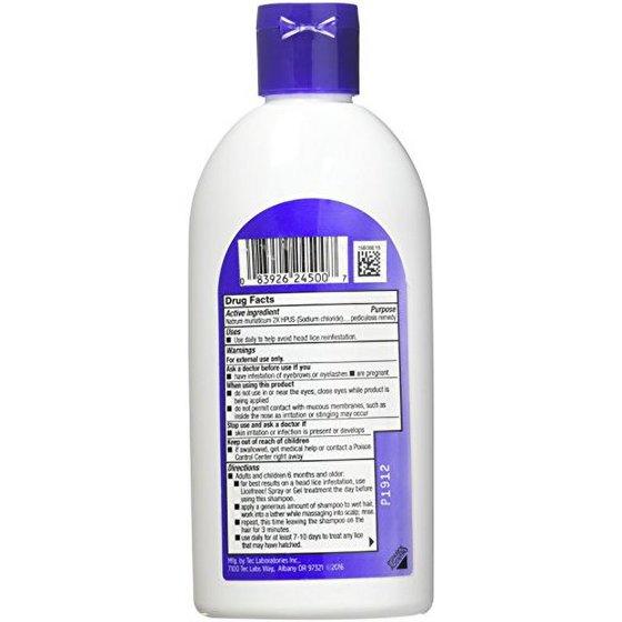 A naturally moisturizing 2 in 1 shampoo that can be used every day in place of your regular shampoo- Perfect to use after treating head lice to help prevent a recurring infestation, on all family members to help prevent spreading head lice, and when notified of a head lice outbreak at school to stay lice free- This shampoo also helps repair damaged hair and soothes your irritated scalp after using popular pesticide based head lice treatments-DirectionsAdults and Children 6 Months of Age and Older Apply a generous amount of shampoo to wet hair, work into a lather while massaging into scalp- Rinse- Repeat, this time leaving the shampoo on the hair for at least 3 minutes- To treat a head lice infestation, use the shampoo daily for at least 2 weeks- For prevention, use daily- For best results on an extreme head lice infestation, use Licefreee spray or gel treatment before using this shampoo- Children Under 6 Months of Age Do not use, consult a doctor- Store at 59-86 degrees F 15-30 degrees C-IngredientsActive IngredientsNatrum Muriaticum Sodium Chloride, USP - 1 X Pediculosis Remedy and ProphylacticInactive IngredientsBenzyl Alcohol, Cocamidopropyl Betaine, Caprylic, Capric Triglycerides, Coconut Oil, Disodium EDTA, Fragrances, Purified Water, Sodium Laureth Sulfate, Tea Tree OilWarningsFor external use only- Ask a doctor before use if you have infestation of eyebrows or eyelashes are pregnant- When using this product do not use on or near the eyes close eyes while product is being applied do not permit contact with mucous membranes, such as inside the nose as irritation or stinging may occur- Stop use and ask a doctor if skin irritation or infection is present or develops- Keep out of reach of children- If swallowed, get medical help or contact a Poison Control Center right away- SKU: RTL133629