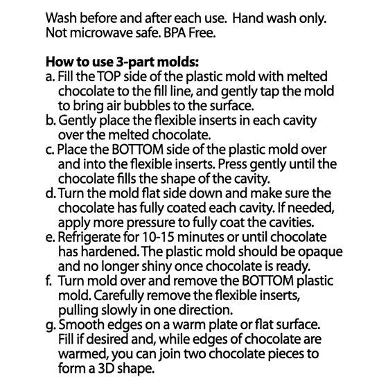 - Includes 2 rigid plastic molds (top and bottom) with 2 flexible inserts per cavity for easy use
