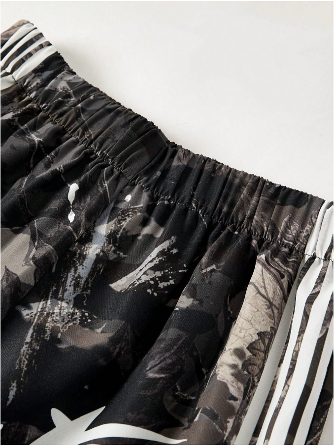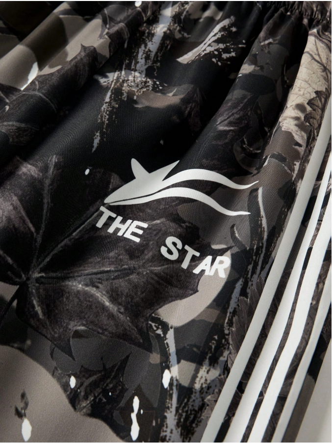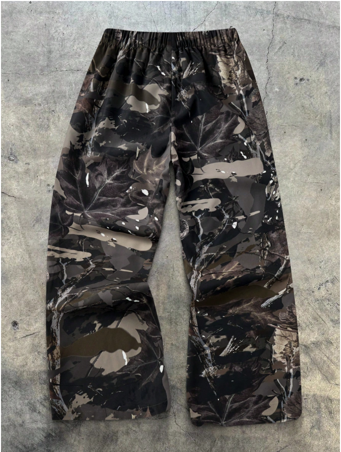 Teen Boy Maple Leaf Webbing Digital Print Pattern Cargo Pants, Suitable For Spring, Summer, Autumn And Winter