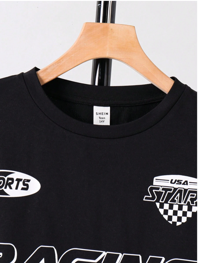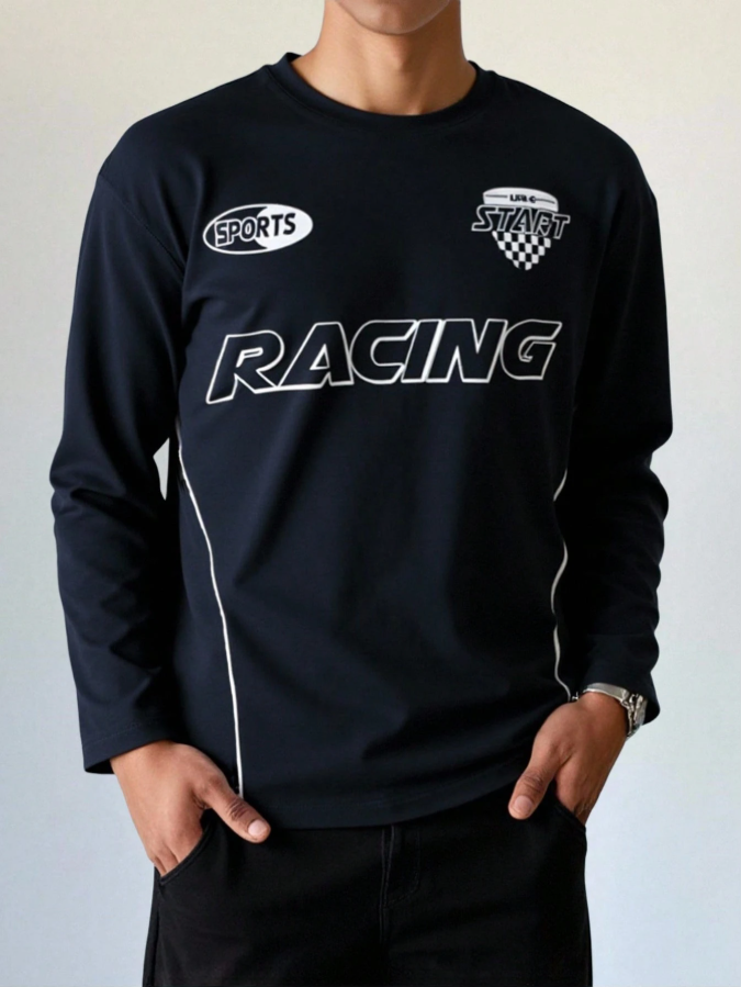 Teen Boy/Teen Boys' Casual Everyday Versatile Comfortable Letter Graphic Print Loose Fit Crew Neck Long Sleeve Knit T-Shirt Suitable For Birthday Parties, Evening Parties, Performances, Weddings, Baptisms, Opening Ceremonies Daily Suitable