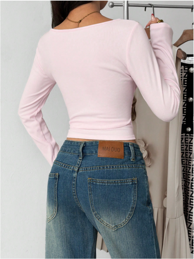 Teen Girls' Casual Crew Neck Long Sleeve Fitted Top