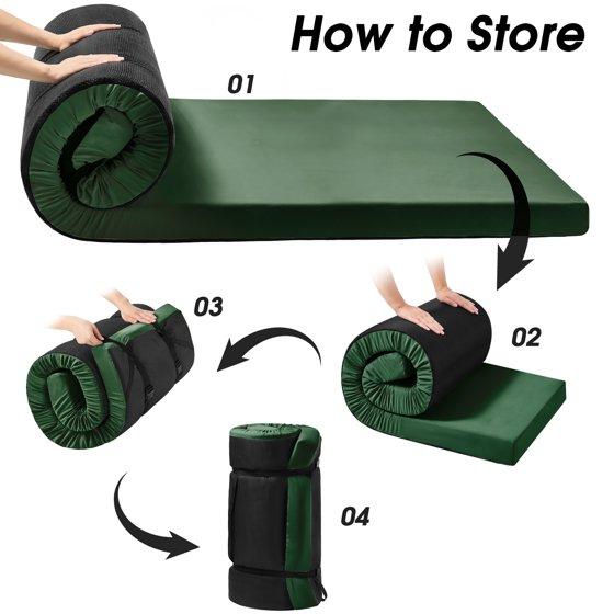 - 【COMFORT IS PRICELESS IN EVERY CAMPING TIME】 The super soft and cozy memory foam camping mattress is made of high-density memory foam material, automatically adapts to the shape and weight of the body and provides full protection. So bring about excellent comfort and shock absorption effects. Compared to sleeping bag and camping air mattress, sleeping mattress for camping providing camping lovers with a high-level sleeping experience, allowing your body to fully rest and keep energetic.