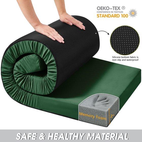 Teler CertiPUR-US 2" Memory Foam Camping Single Mattress, Portable Sleeping Pad for Camping, Car, Tent SUV Single Mattress