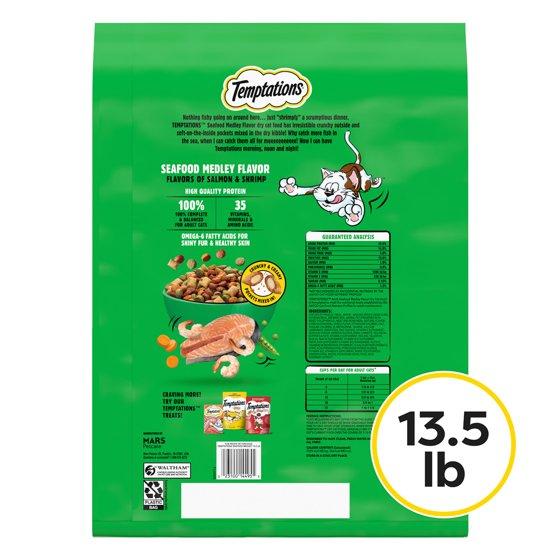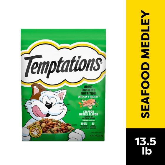 - Your cat will come running for Temptations Adult Dry Cat Food Seafood Medley Flavor.