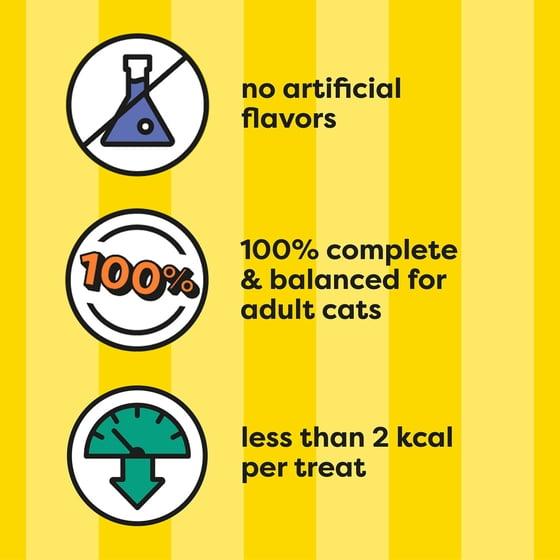 - Cat treat is 100% nutritionally complete and balanced for adult cat maintenance.