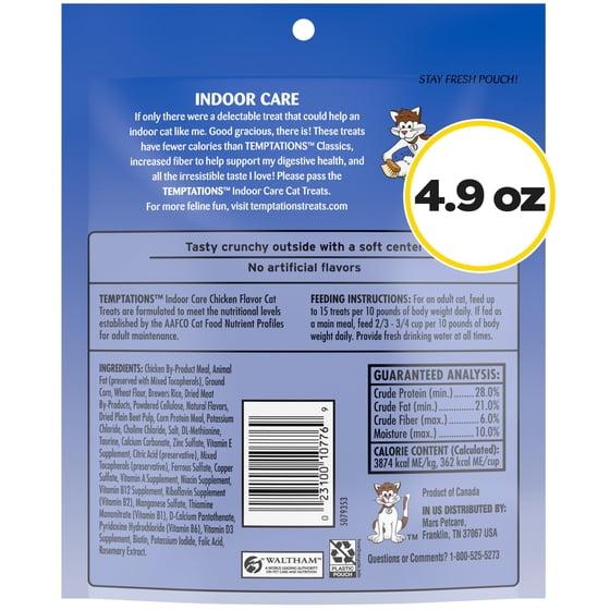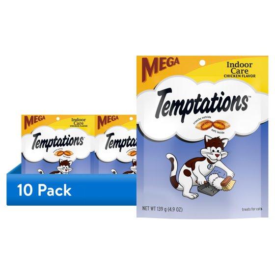 (10 pack) Temptations Indoor Care Chicken Flavor Crunchy And Soft Treats For Cats, 4.9 Oz Pouch