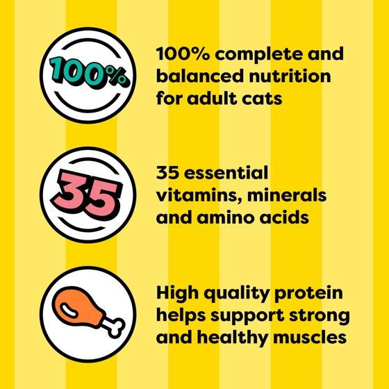 - Provides 100% complete and balanced nutrition for adult cats.